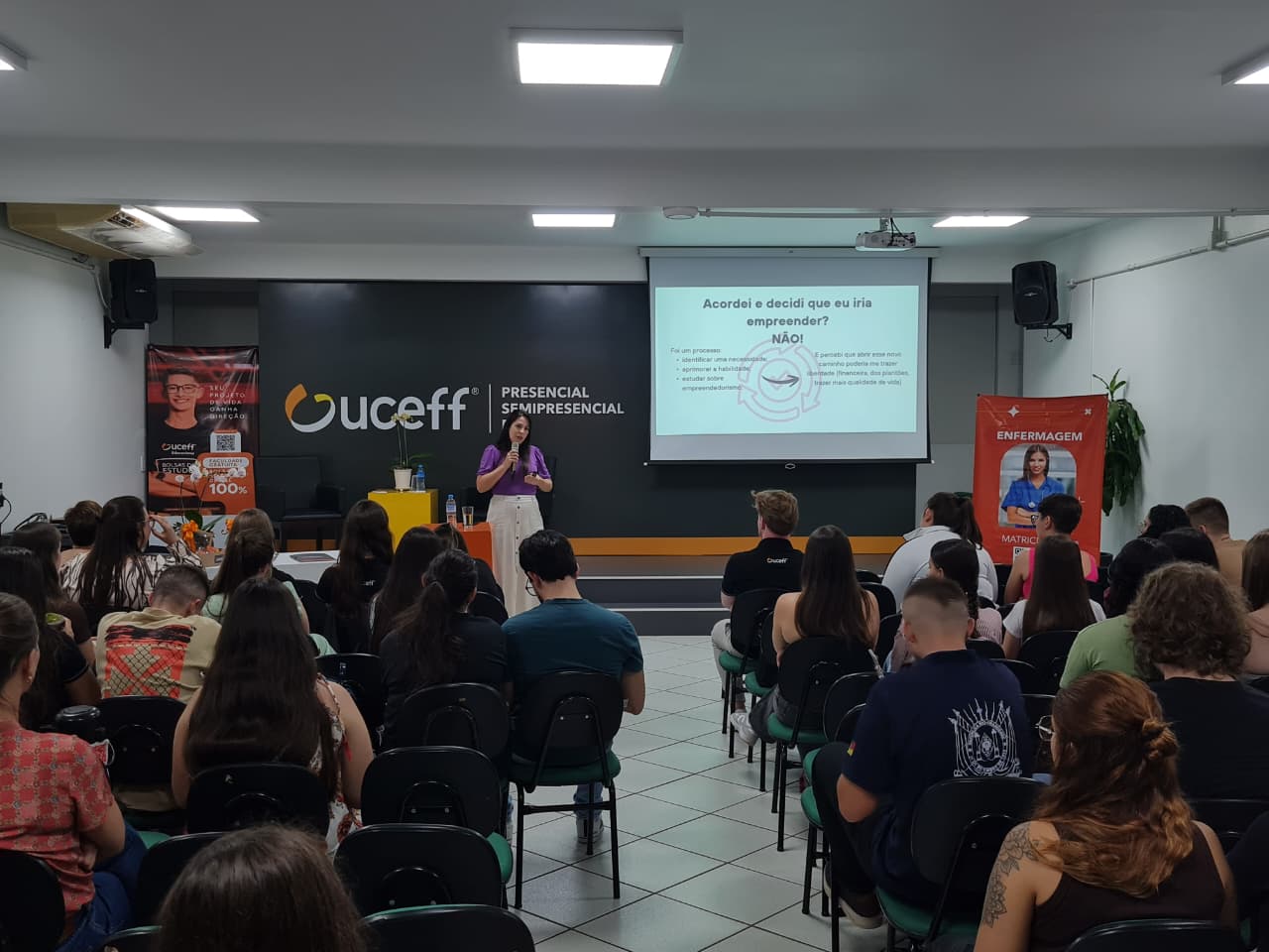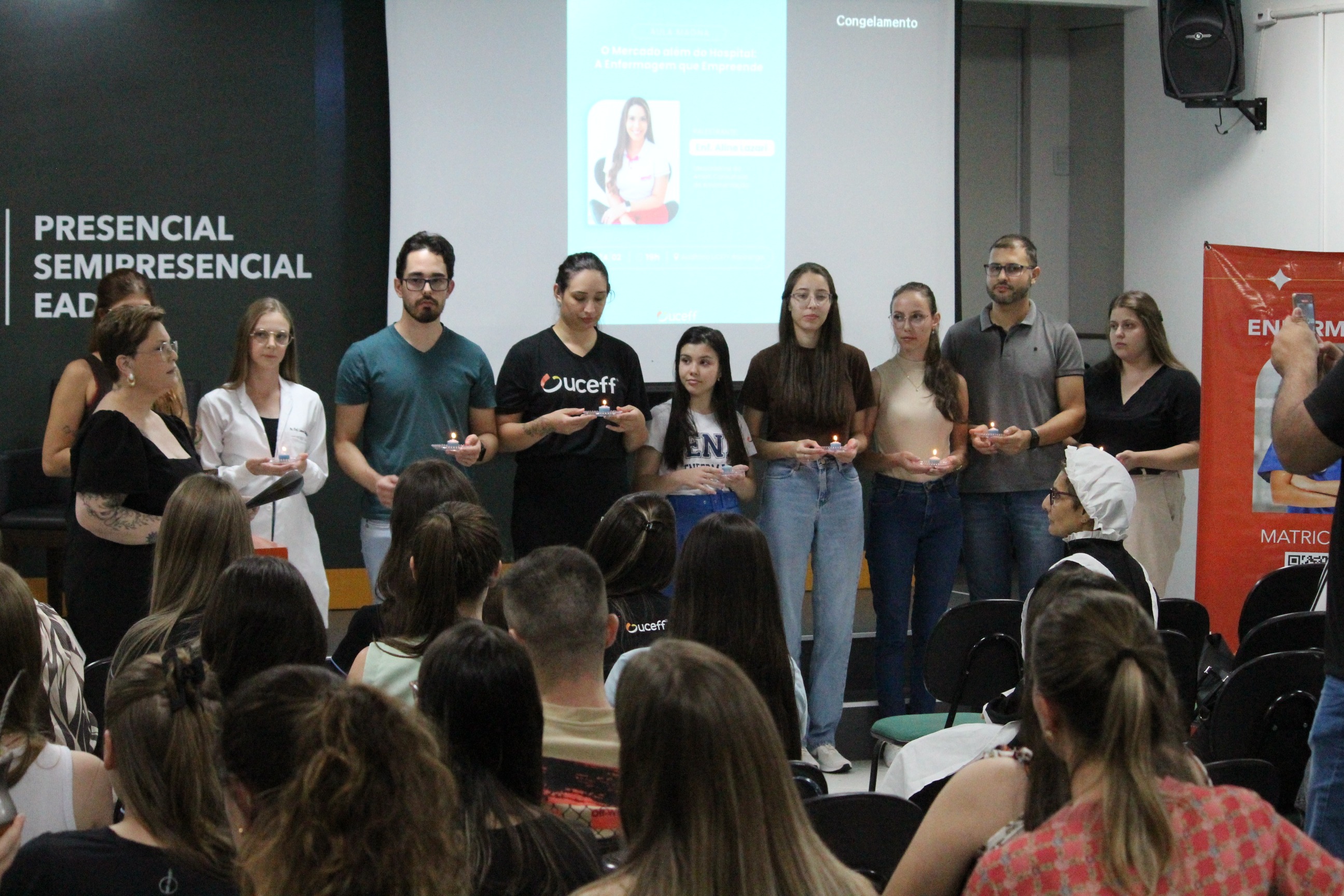 A noite da última terça-feira (24) foi marcada por muito conhecimento para os acadêmicos de Enfermagem da UCEFF Itapiranga que participaram da Aula Magna com o tema: “O Mercado além do Hospital: A Enfermagem que Empreende”.