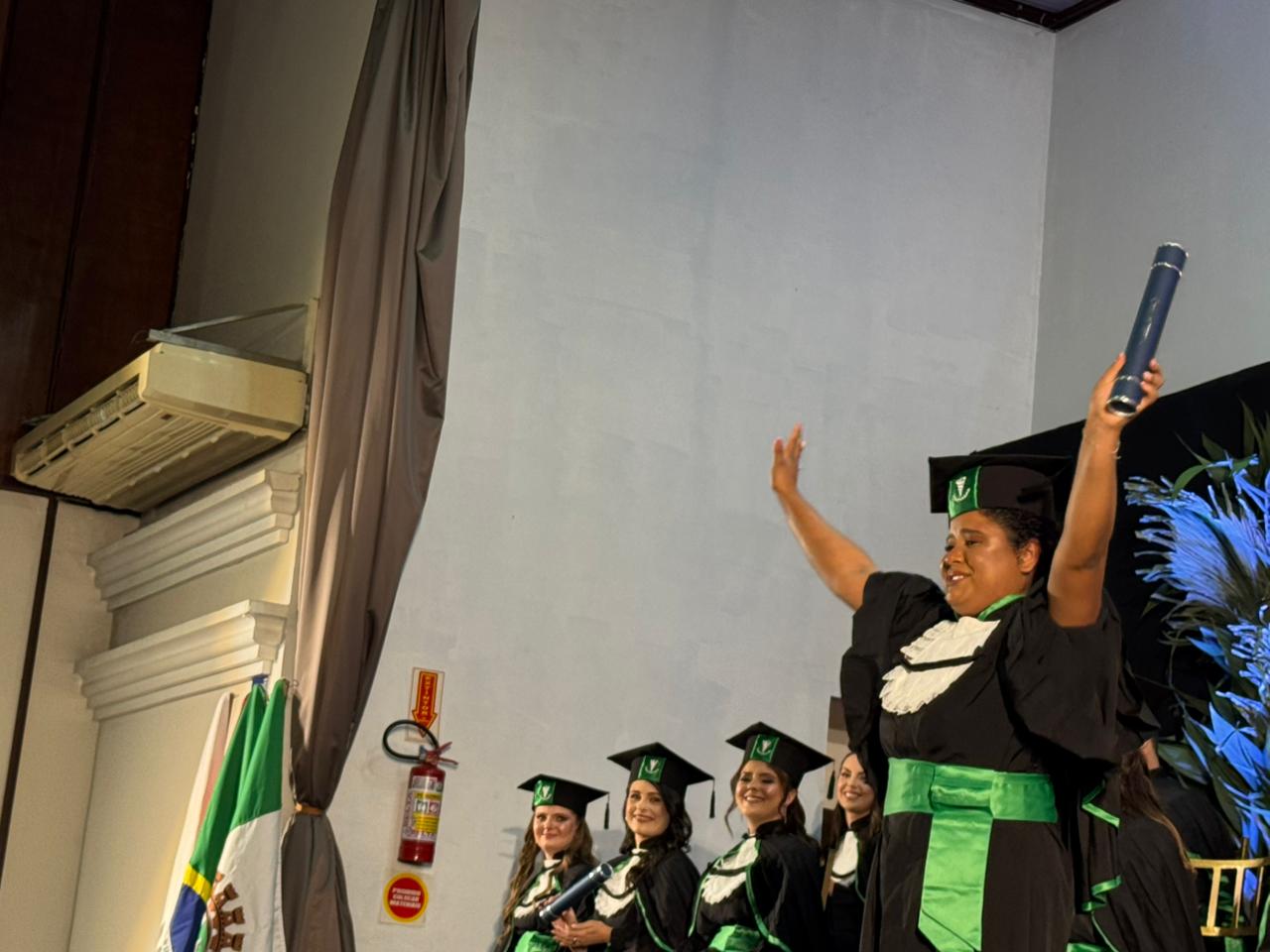 “Hoje é um dia marcado pela conclusão de uma jornada importante, e nós da UCEFF desejamos que vocês continuem nessa caminhada, pois o mundo de hoje exige atualização permanente e constante. Os desafios são imensos, mas, sem dúvidas, o momento de hoje deve ser enaltecido. Em nome do reitor da UCEFF, Leandro Sorgatto, desejamos os parabéns e muito sucesso em suas caminhadas. Sejam felizes enquanto pessoas e respeitem sempre alguns valores imprescindíveis: o conhecimento, a dedicação e a ética.”
